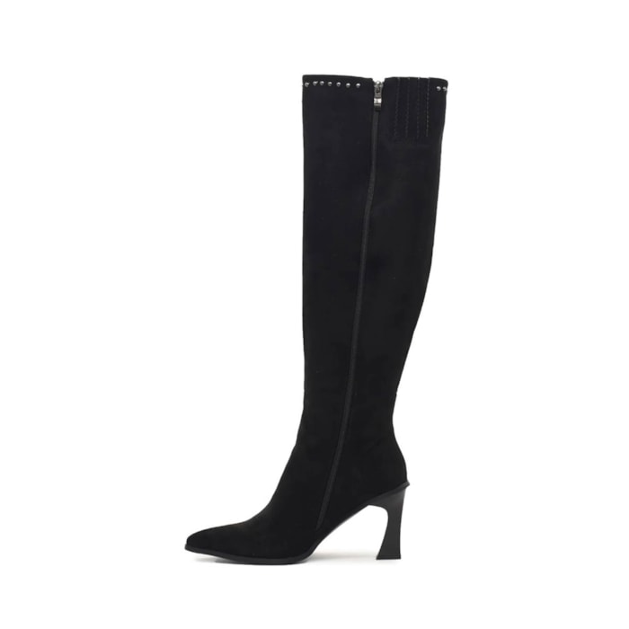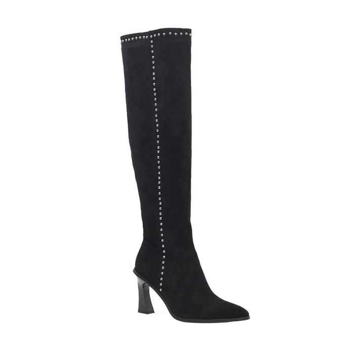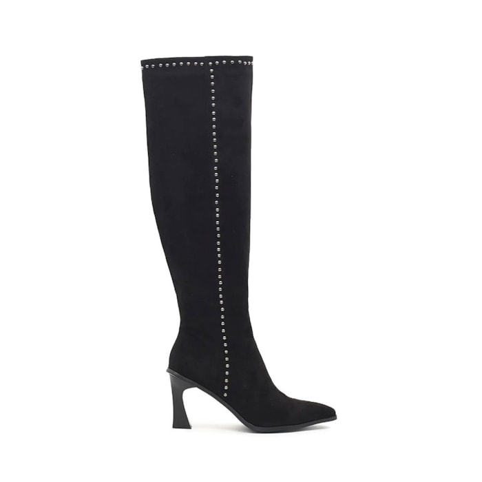 Bota cowboy de salto alto com rebites na lateral e fecho interno. Se você resistiu às botas de cowboy, não poderá mais dizer não, pois neste inverno elas são as botas femininas mais populares . As botas cowboy de salto alto e fino com acabamento pontiagudo vão estilizar as suas pernas, tornando-as o complemento perfeito para os seus looks desta temporada. Combine suas botas cowboy de salto alto com jeans skinny ou um vestido estampado e fique perfeito! Altura da cana 48 cm Altura do s
