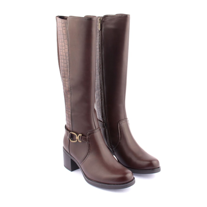 Bota de cano alto para senhora. Salto com 8cm de altura.