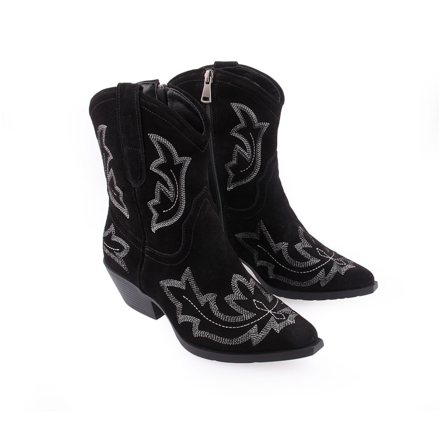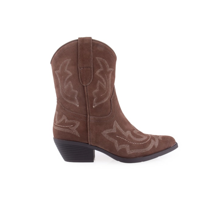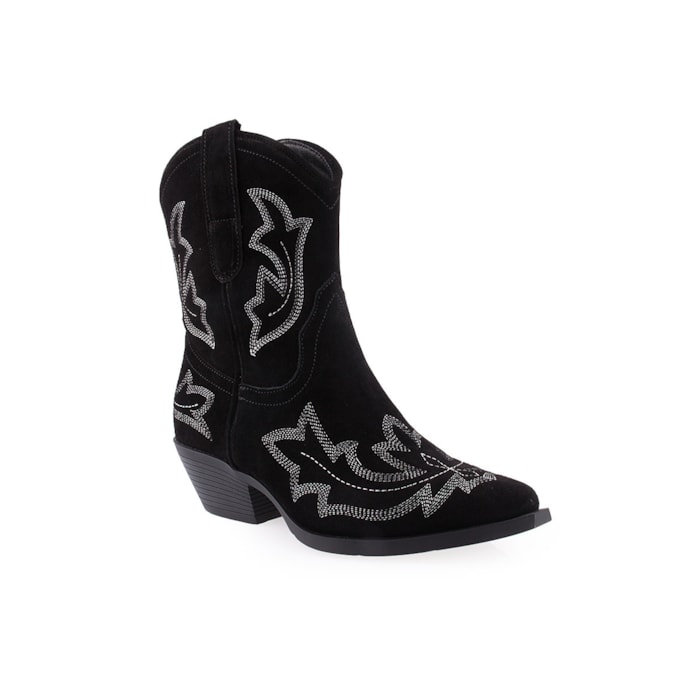 Botim em pele, estilo texana para senhora. Salto com 5cm de altura.