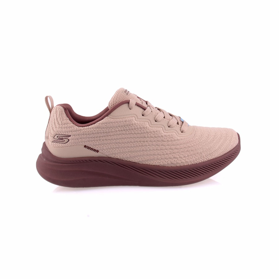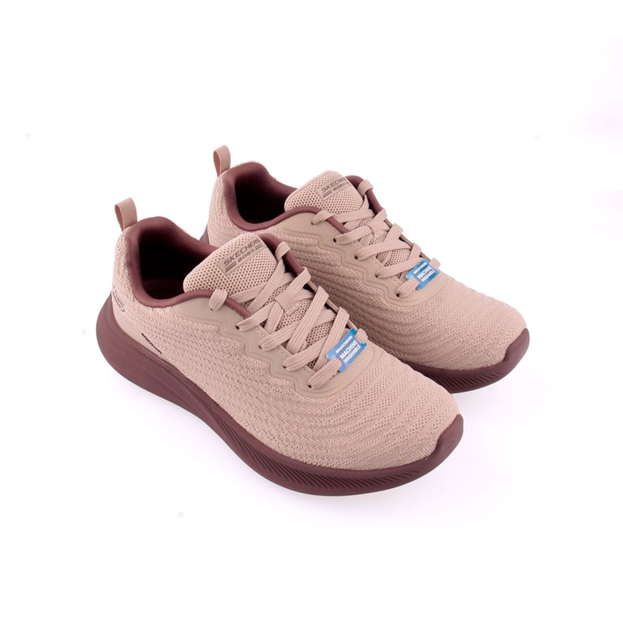Sapatilhas Skechers Bobs Moda Flex - Mellow Dawn Bege e Castanhas vegan confecionadas em materiais têxteis e sintéticos com parte superior em malha texturizada, palmilha Skechers Memory Foam acolchoada e confortável e sola de tração flexível. Altura da entressola: 3.5 cm (aproximadamente)