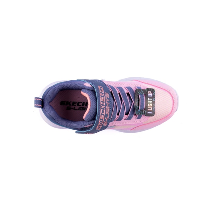 Leve a diversão para a moda esportiva usando Skechers S-Lights®: Sola Glow - Ombre Deluxe. Este design ativo de luzes multicoloridas apresenta uma malha ombre e cabedal sintético com cadarços elásticos, tira ajustável no peito do pé e entressola iluminada bem acolchoada.