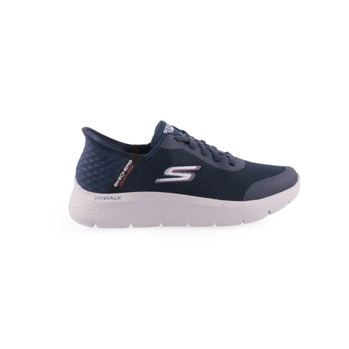 Calça sem mãos e sente o conforto e o estilo flexíveis das Skechers Hands Free Slip-ins® GO WALK Flex™ - Hands Up. Desenhado com a nossa Heel Pillow™, este modelo elástico com atacadores tem a parte superior em tecido de rede com detalhes sintéticos de fusão a quente, palmilhas Skechers Air-Cooled Memory Foam™ e entressola leve com amortecimento ULTRA GO®.