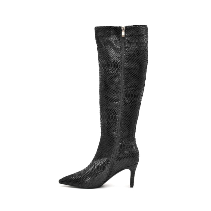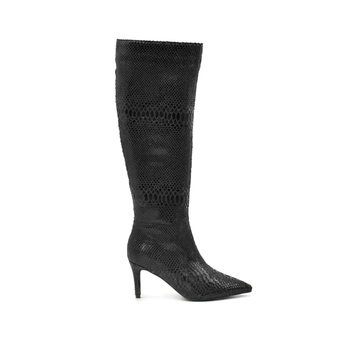 Bota de cano alto para senhora. Salto com 7,5cm de altura.