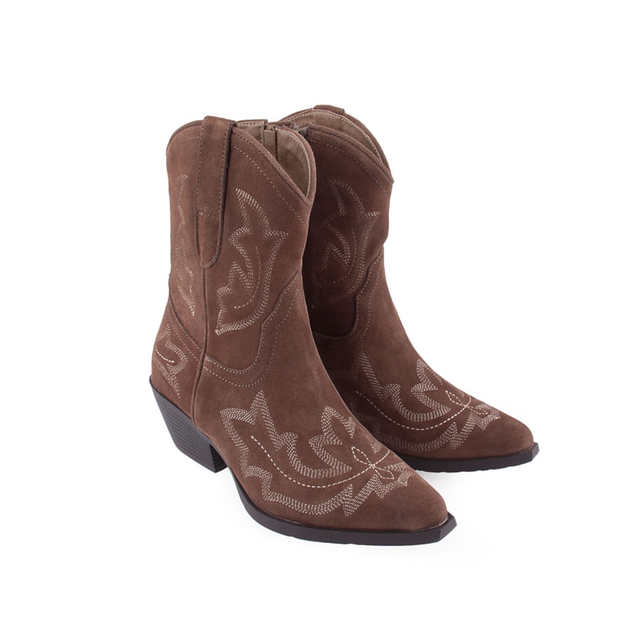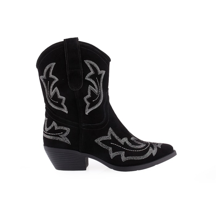 Botim em pele, estilo texana para senhora. Salto com 5cm de altura.