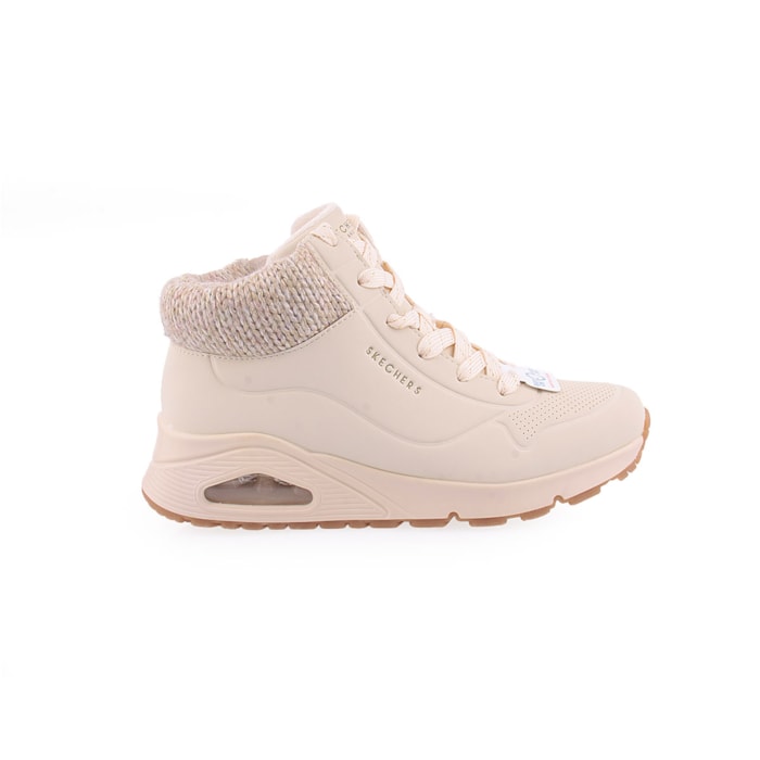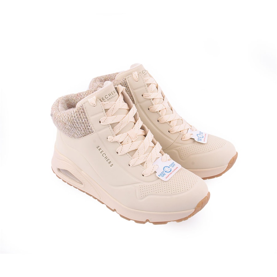 O estilo desportivo alia-se ao conforto acolhedor nas Skechers Street™ Uno Gen1 - Darling Daze. Estas sapatilhas fashion de cano alto têm a parte superior em durabuck com rebordo em malha de camisola, fecho de correr lateral com Fecho Adaptativo e palmilhas Skechers Air-Cooled Memory Foam®, tudo numa entressola em cunha com plataforma de airbag visível Skech-Air®.