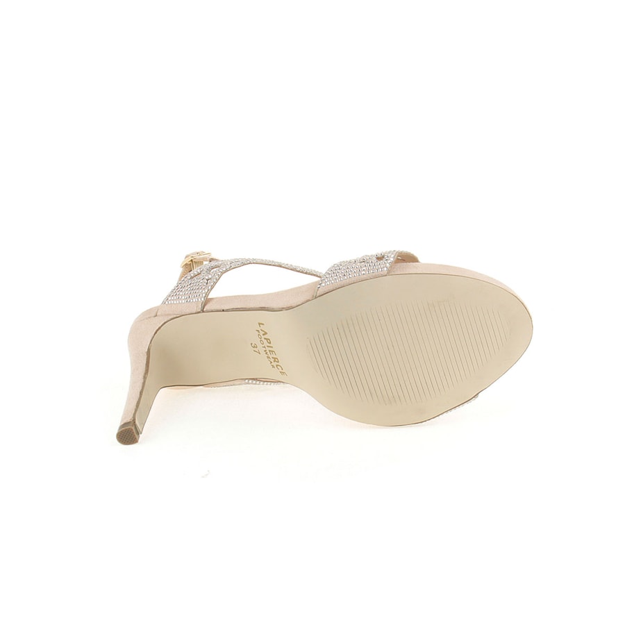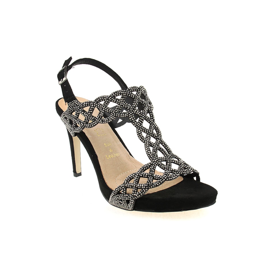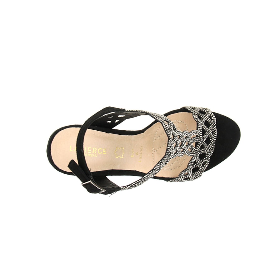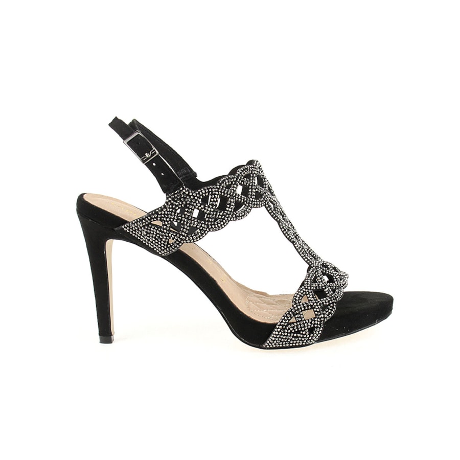 Sandália de senhora com brilhos e interior em pele. Uma sandália de cerimónia. Salto com 10,5cm de altura. Disponível nas cores preto, vermelho e beje.