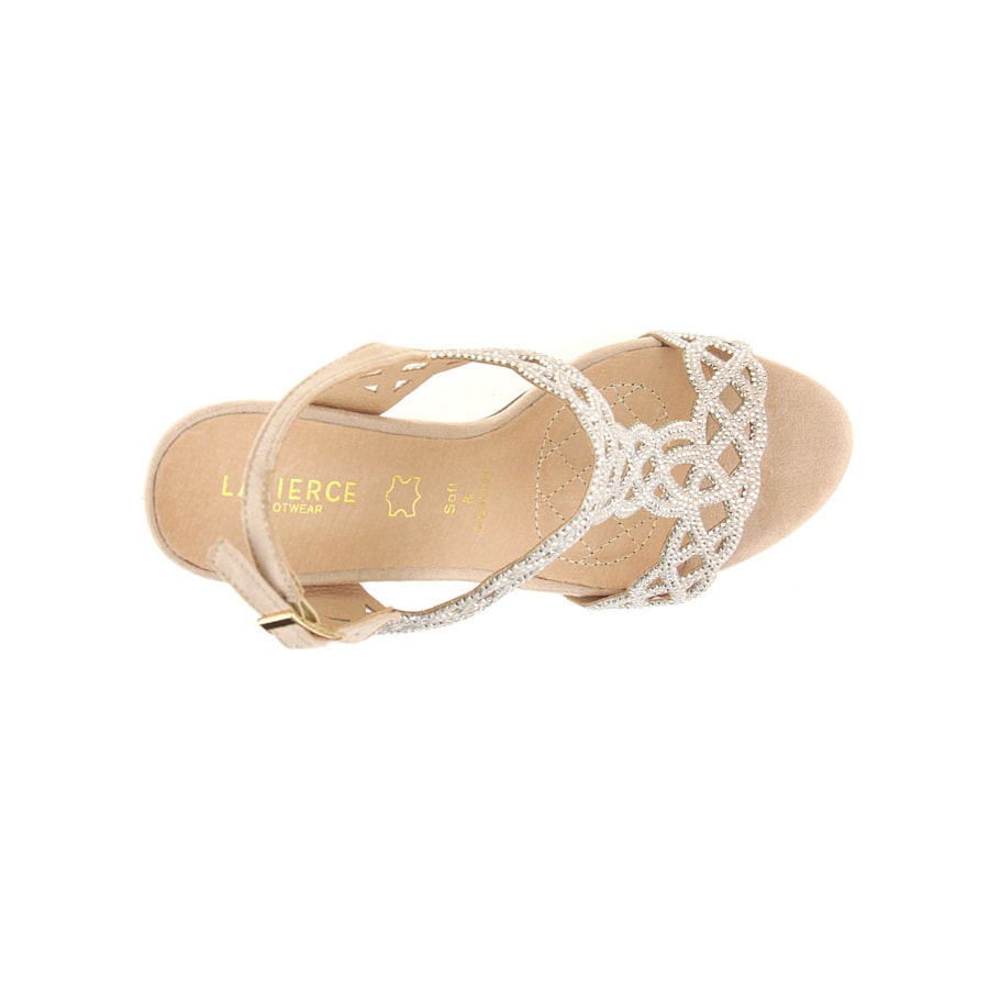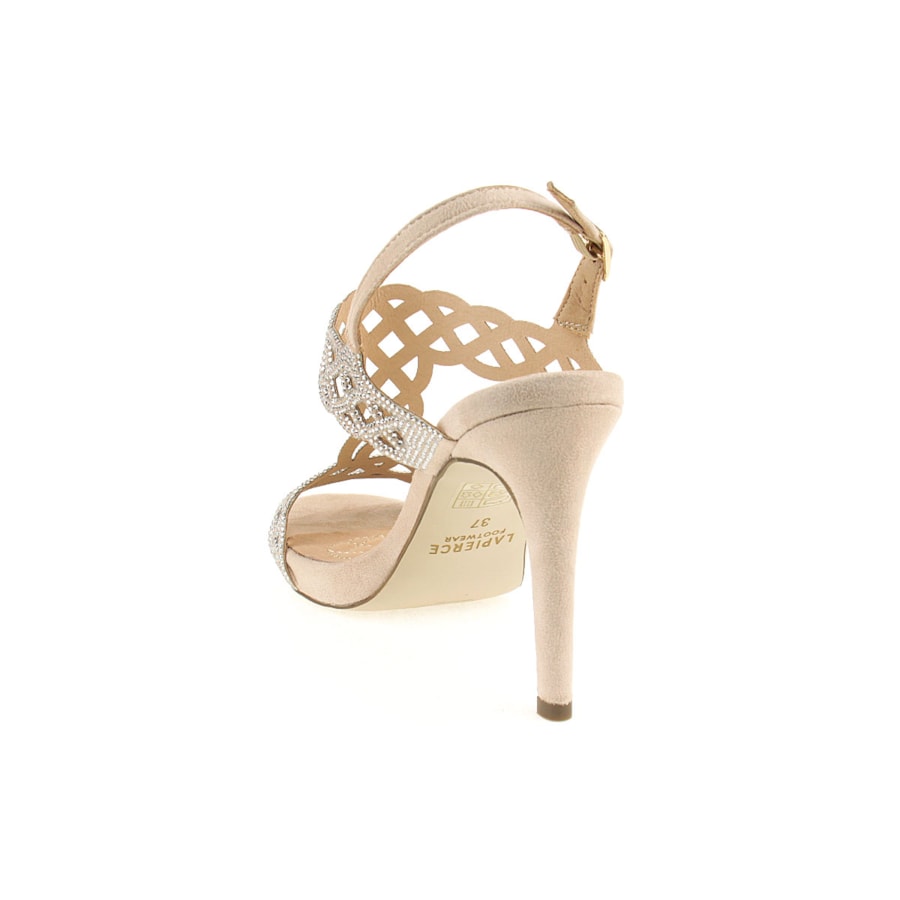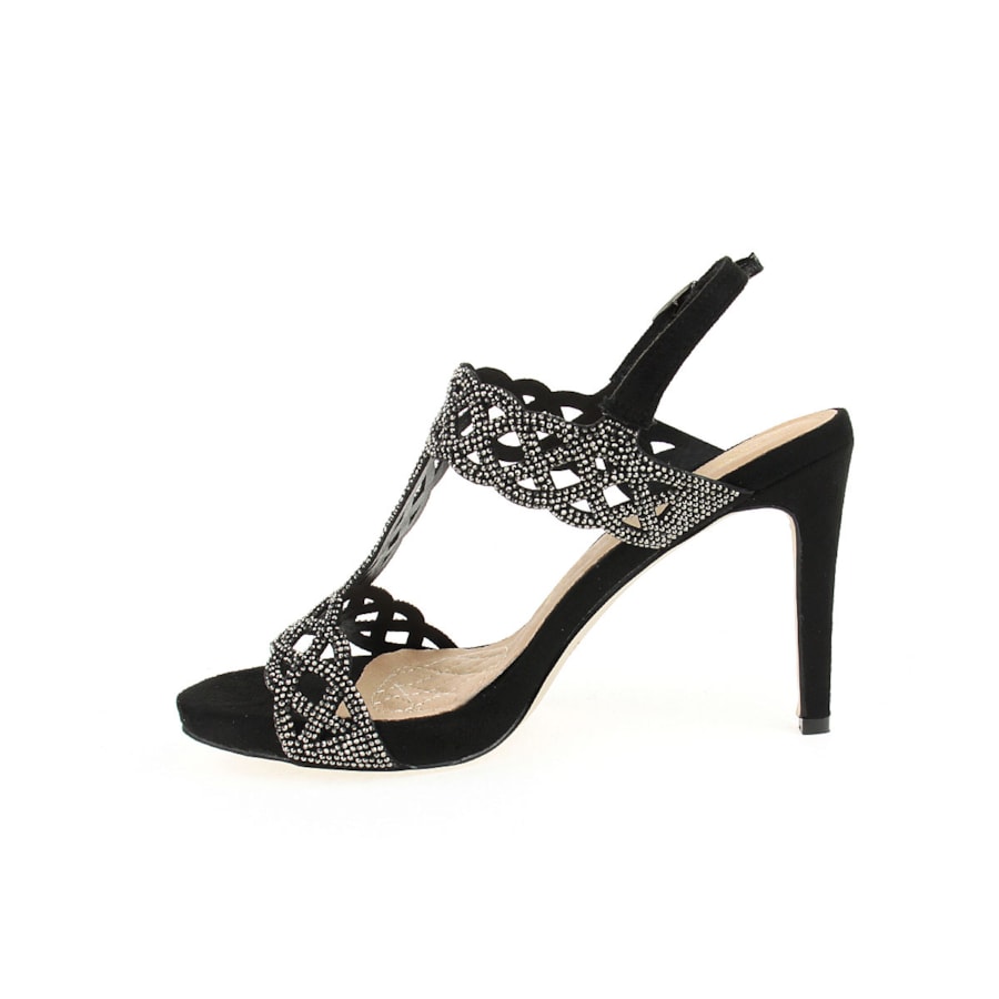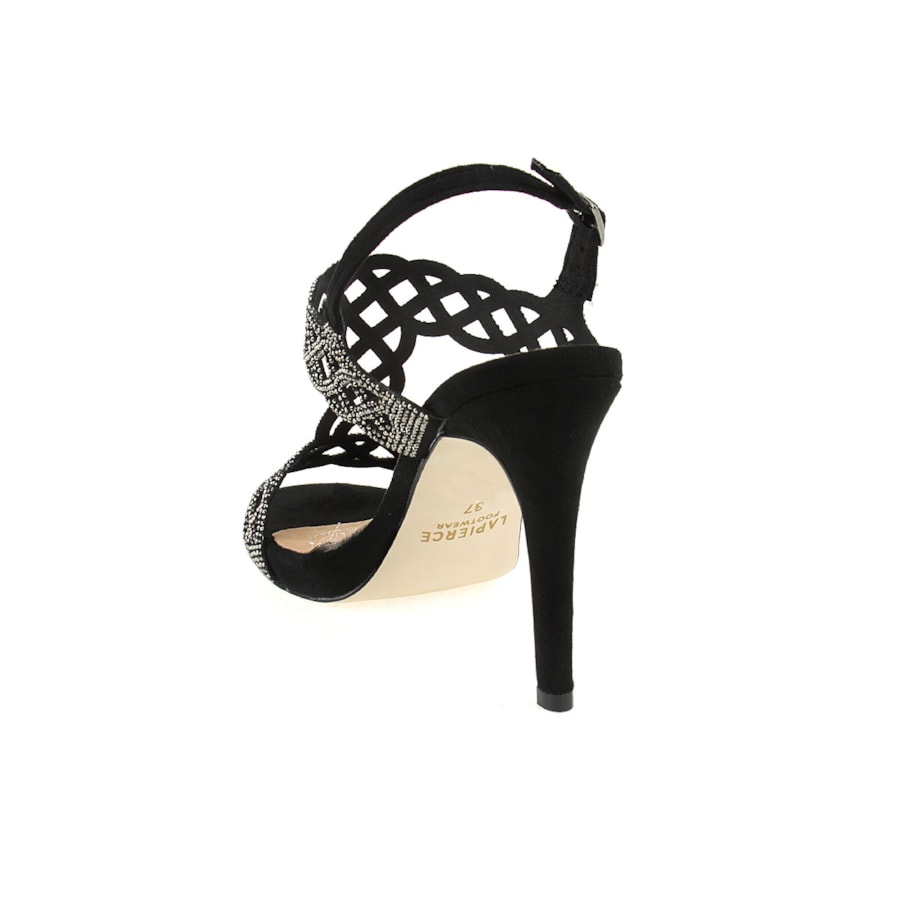 Sandália de senhora com brilhos e interior em pele. Uma sandália de cerimónia. Salto com 10,5cm de altura. Disponível nas cores preto, vermelho e beje.