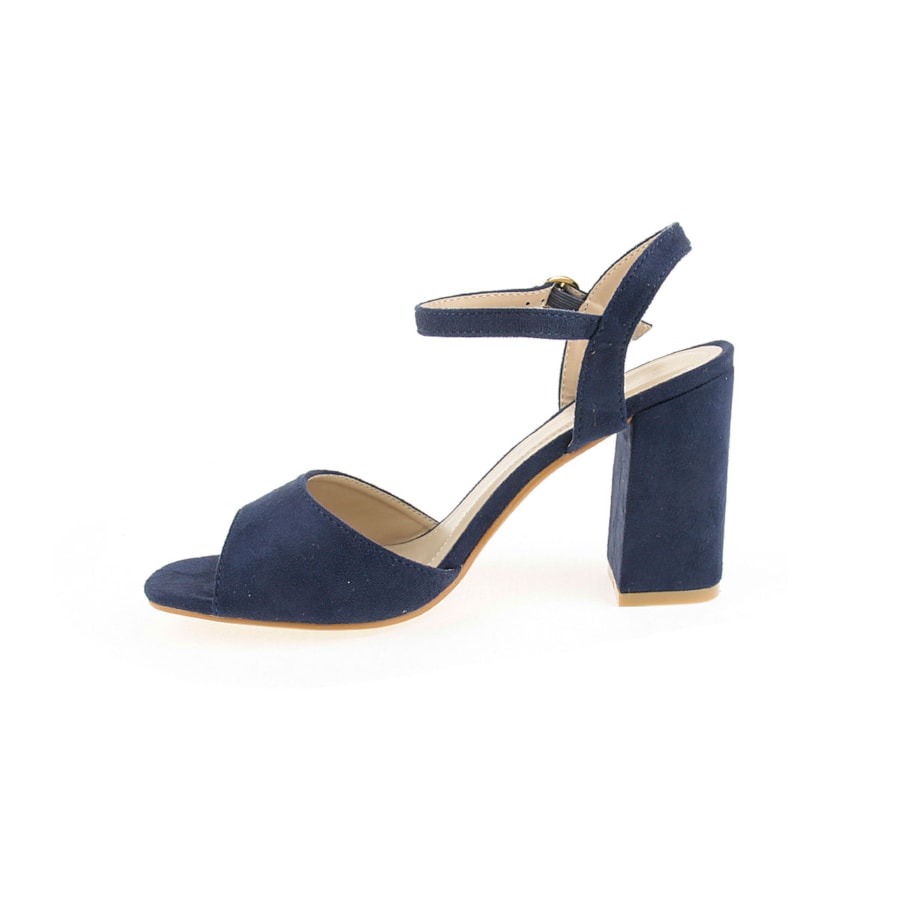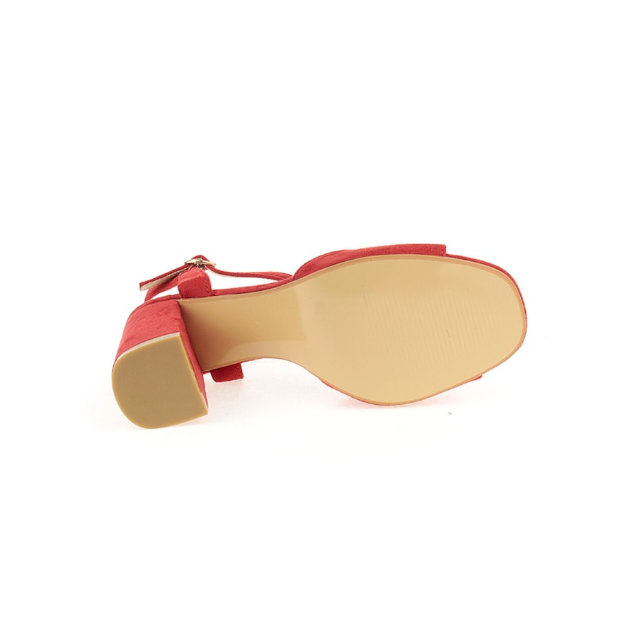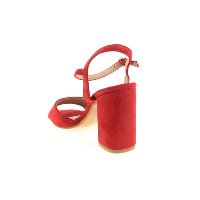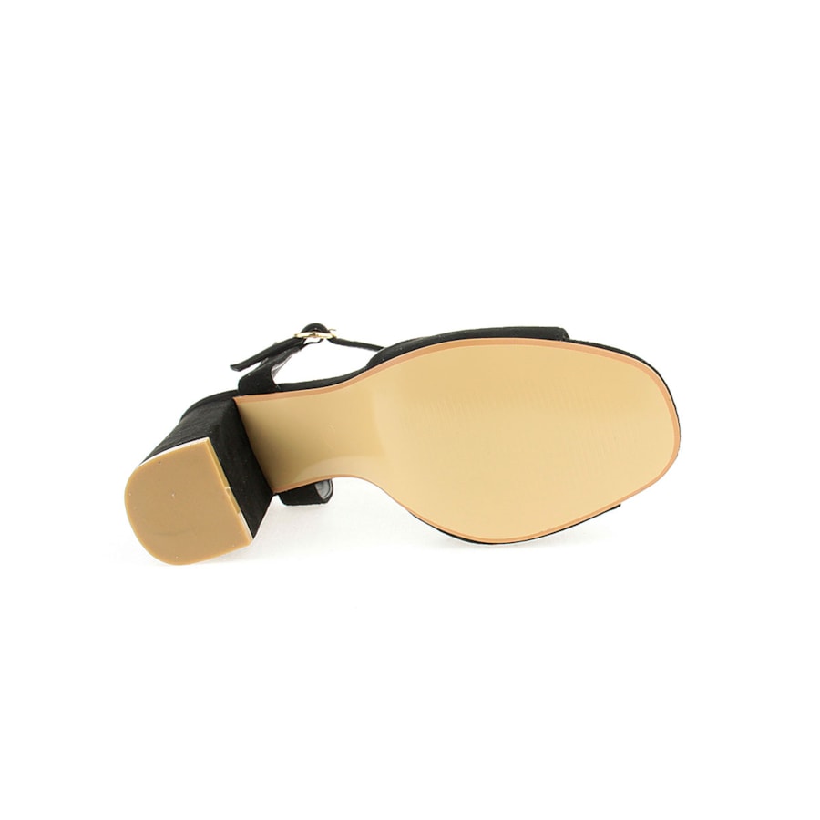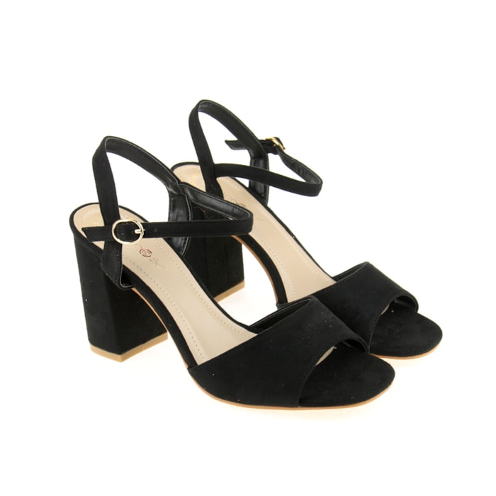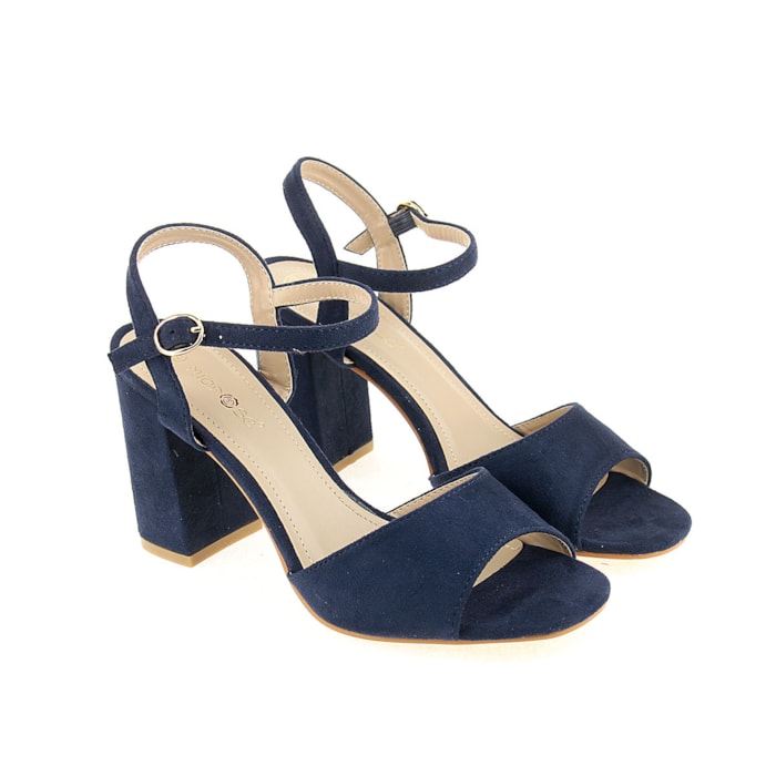 Sandália para senhora com salto largo para melhor estabilidade. Salto com 9cm de altura. Disponível nas cores azul, preto, taupe e vermelho.