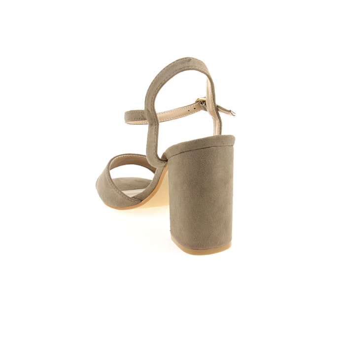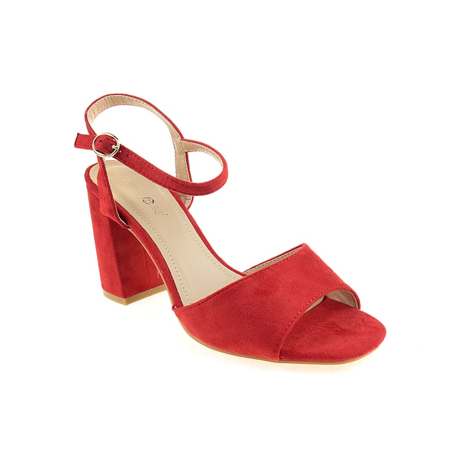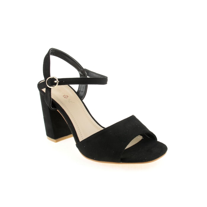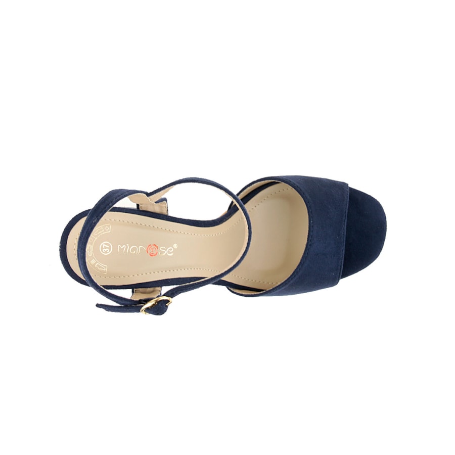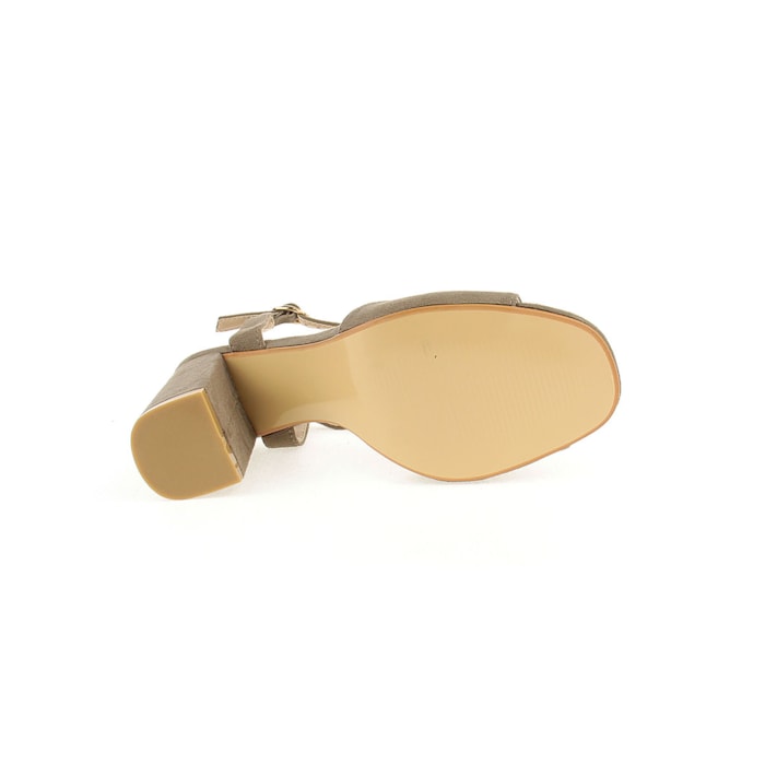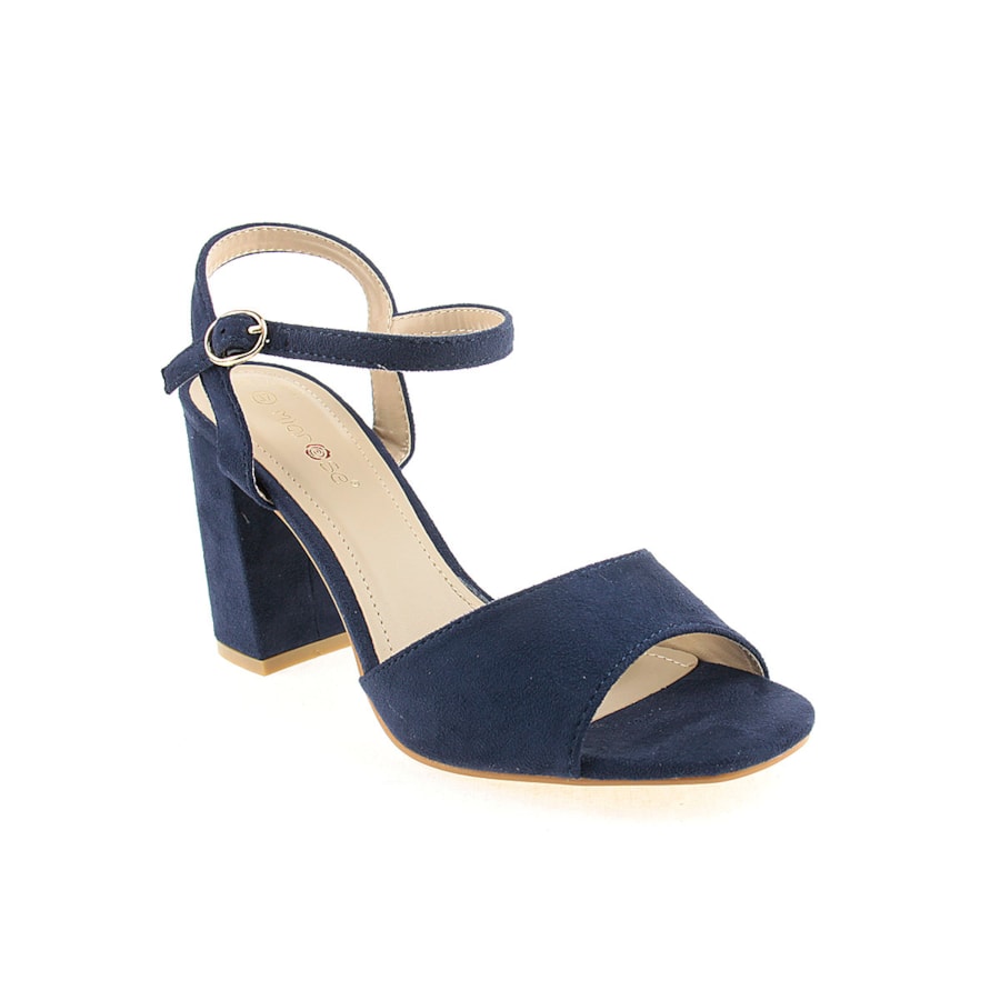 Sandália para senhora com salto largo para melhor estabilidade. Salto com 9cm de altura. Disponível nas cores azul, preto, taupe e vermelho.