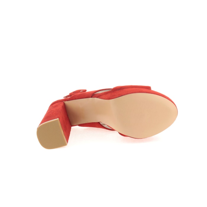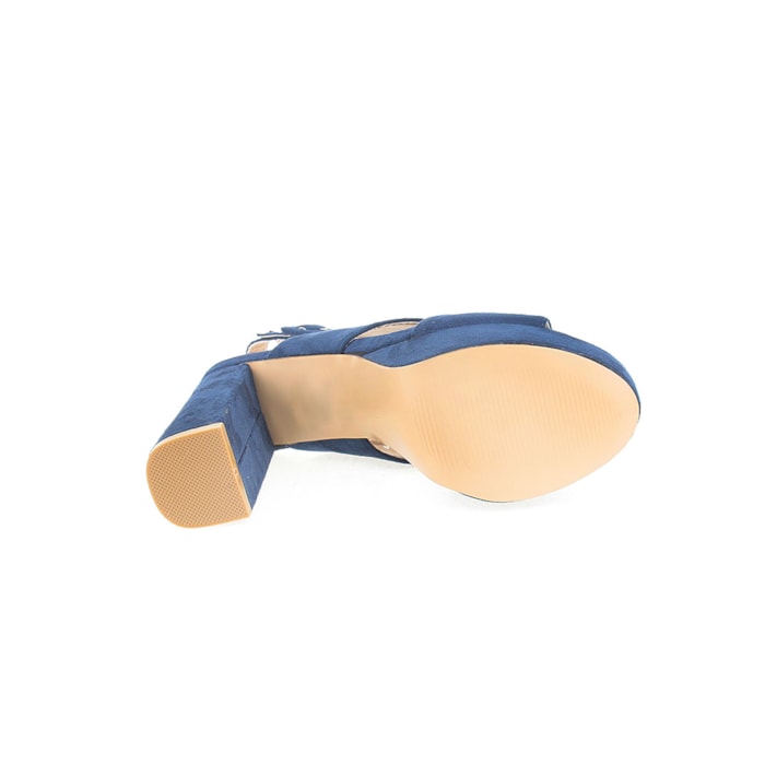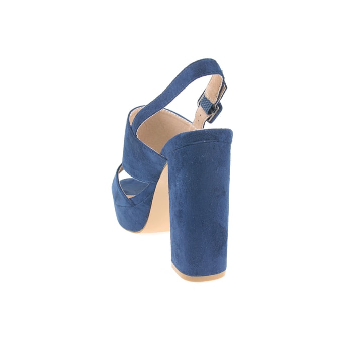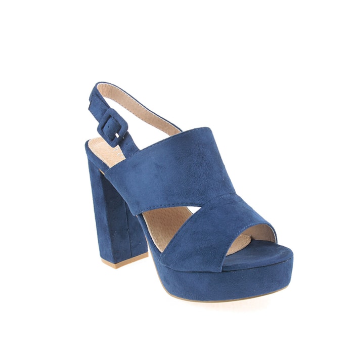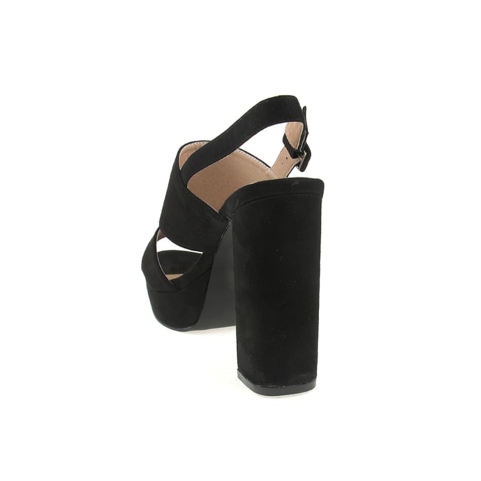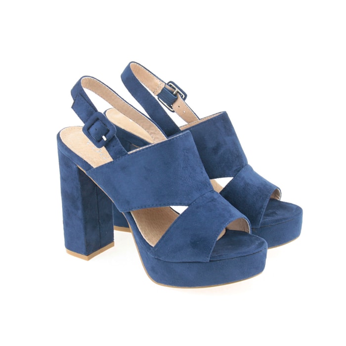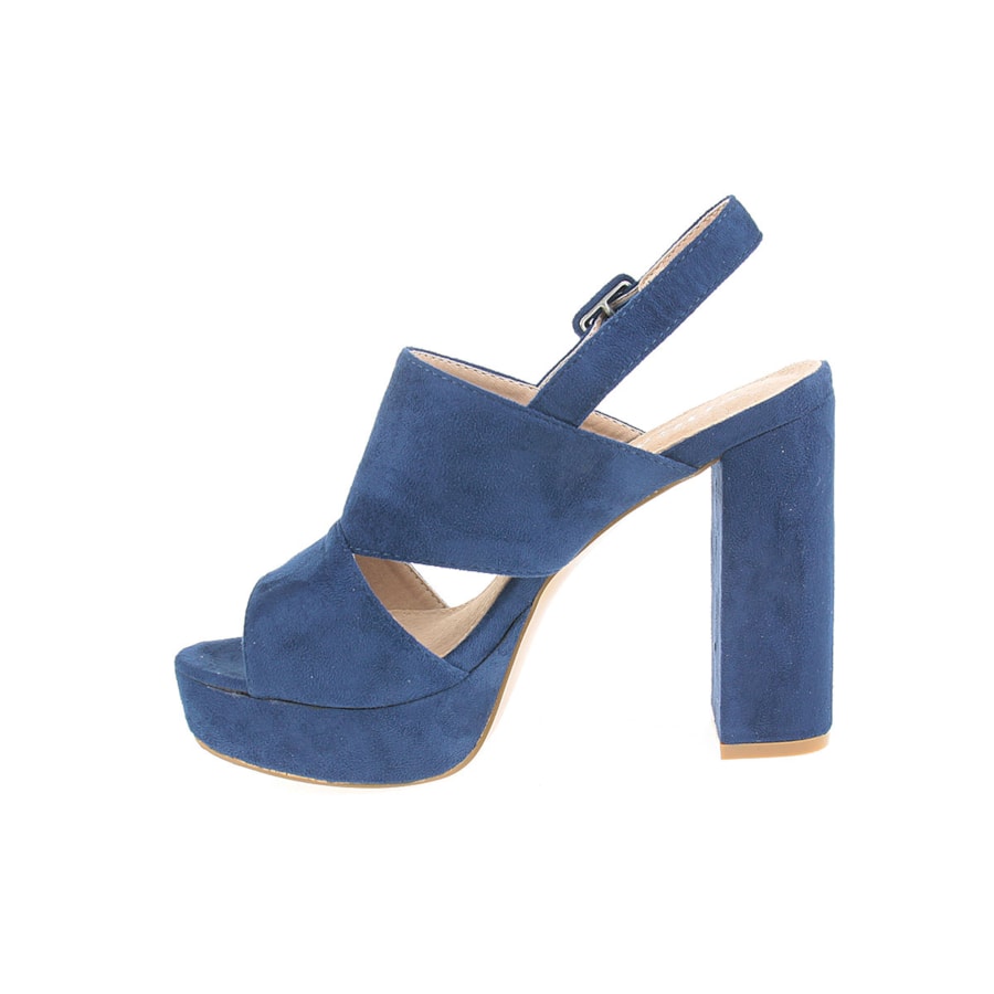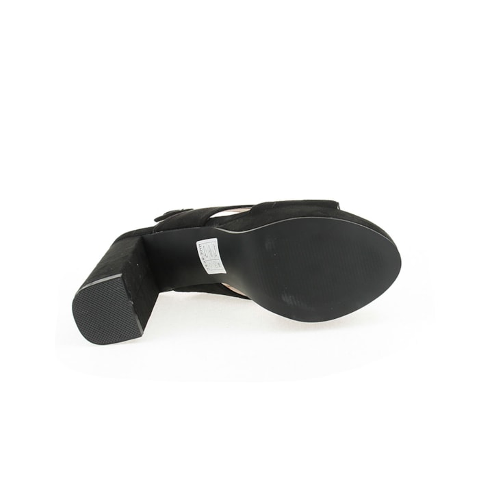 Sandália para senhora em veludo com salto compensado. Salto com 12cm de altura e compensado com 2,5cm.