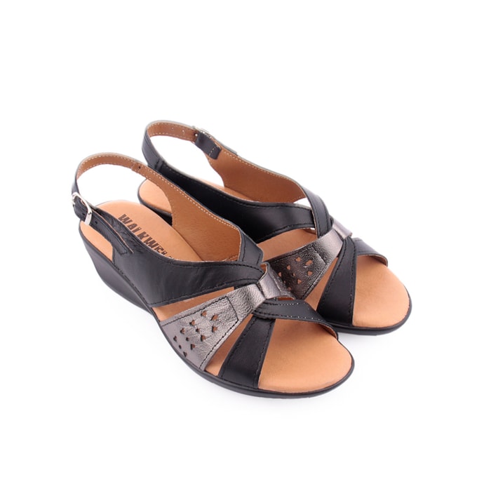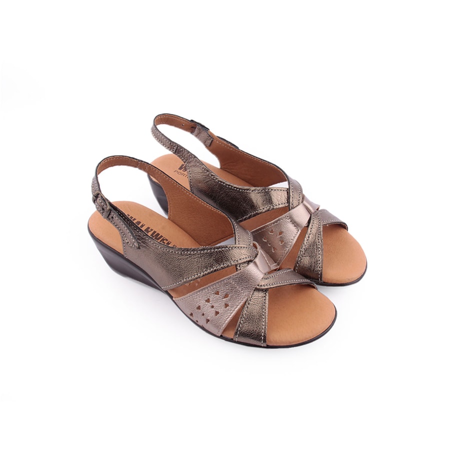 Sandália em pele, estilo conforto para senhora.