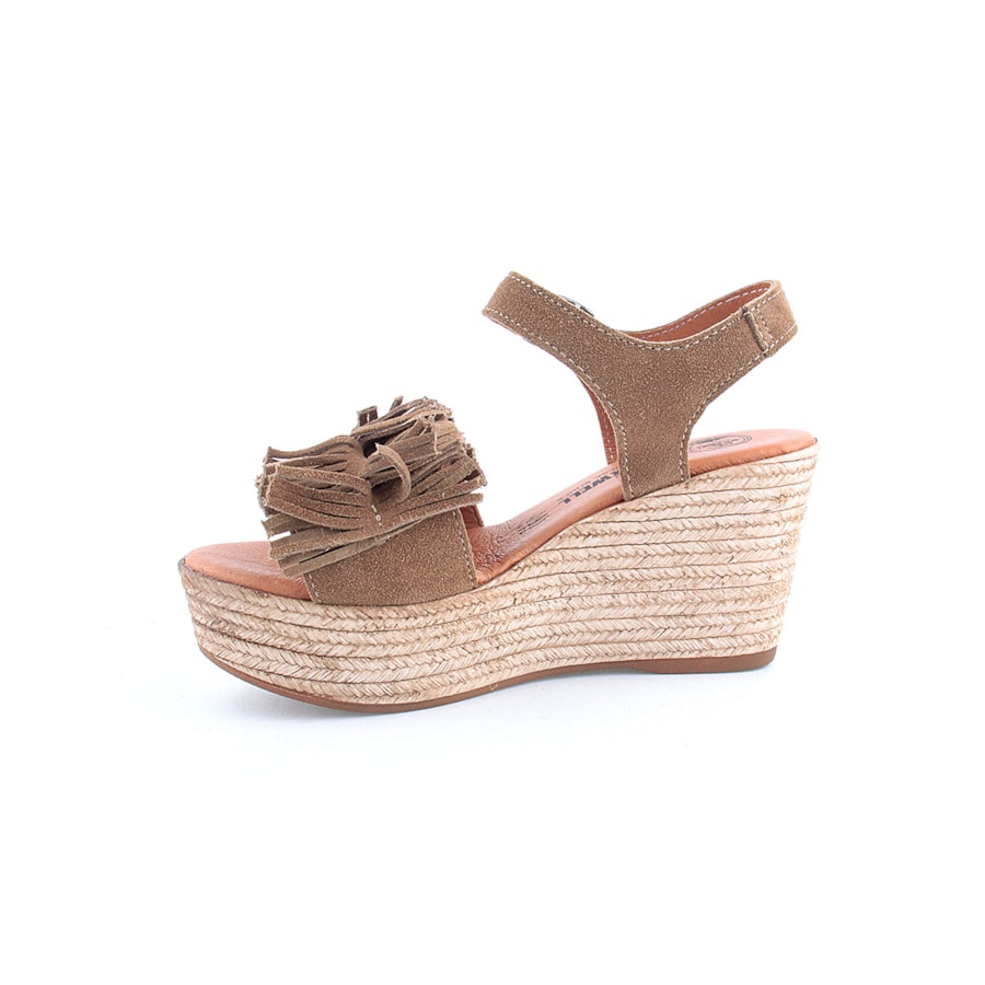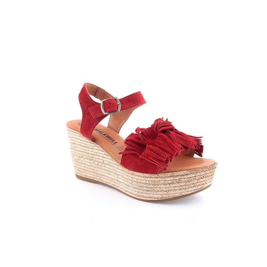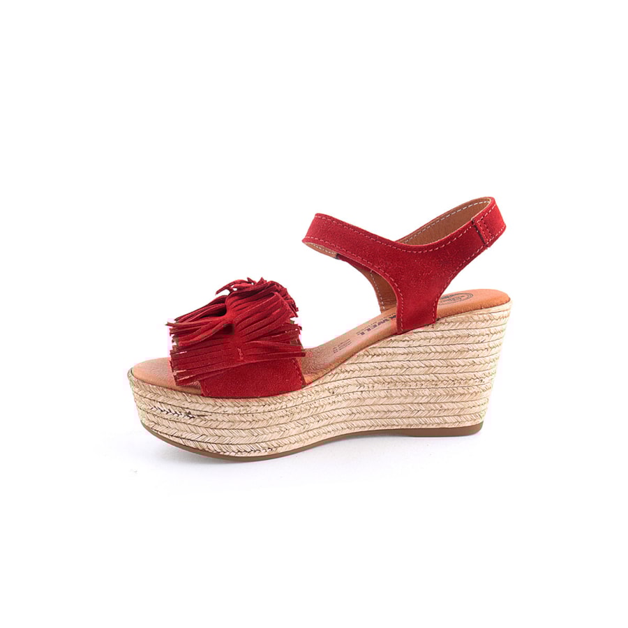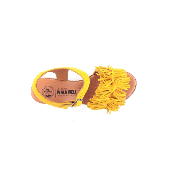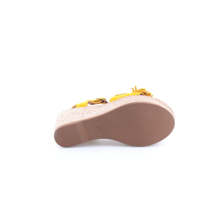Sandália em pele para senhora. Salto com 9,5cm de altura. Disponível nas cores amarelo, preto, taupe e vermelho.