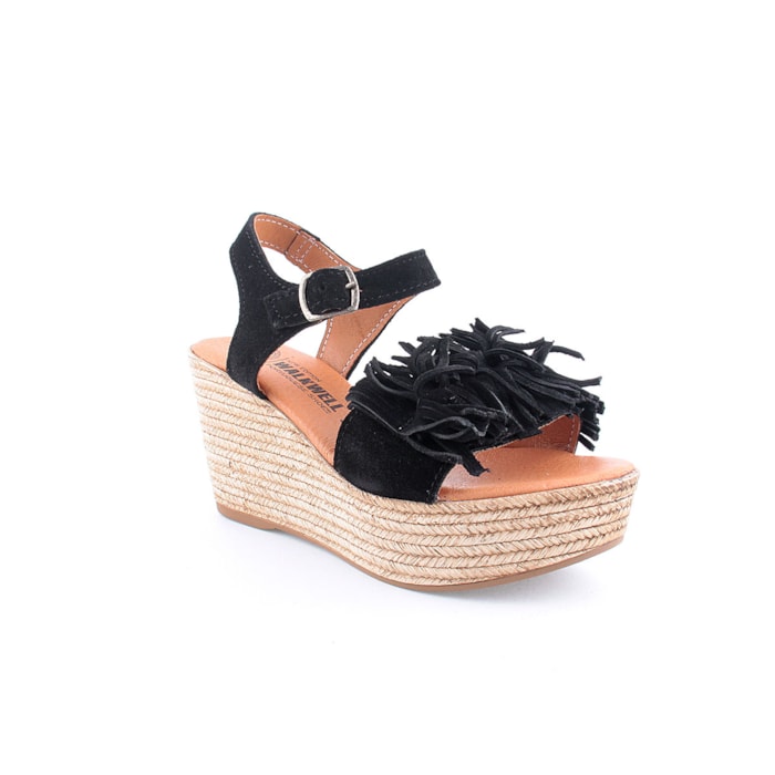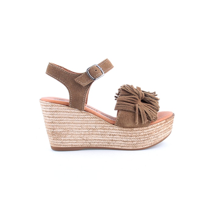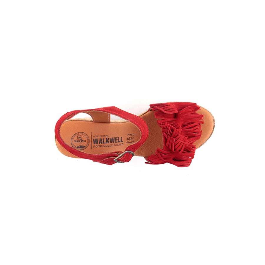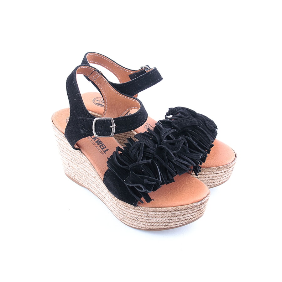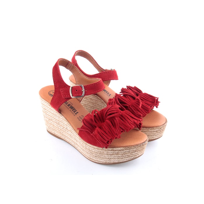 Sandália em pele para senhora. Salto com 9,5cm de altura. Disponível nas cores amarelo, preto, taupe e vermelho.