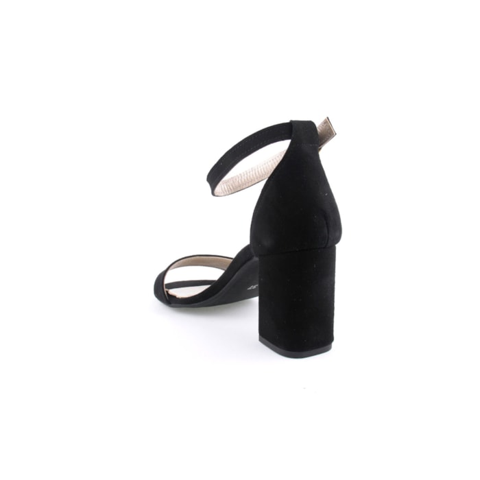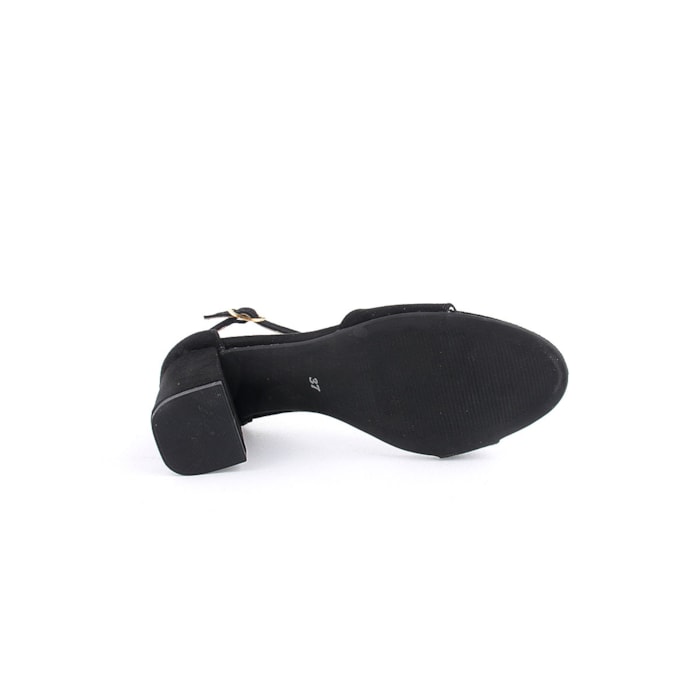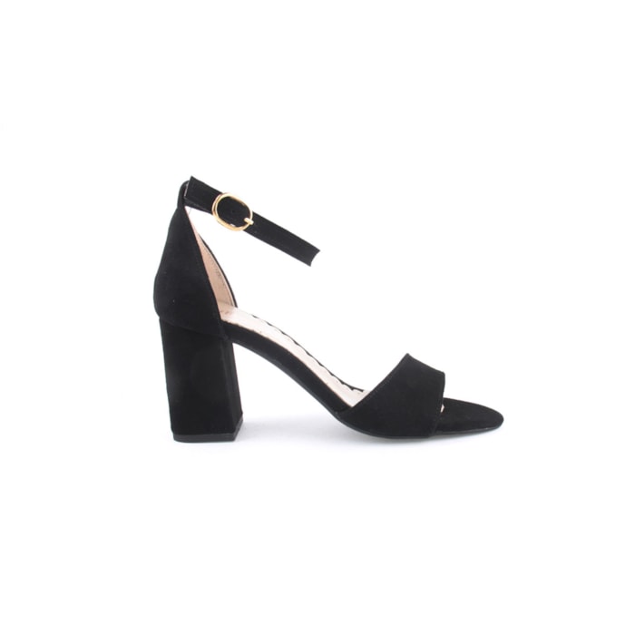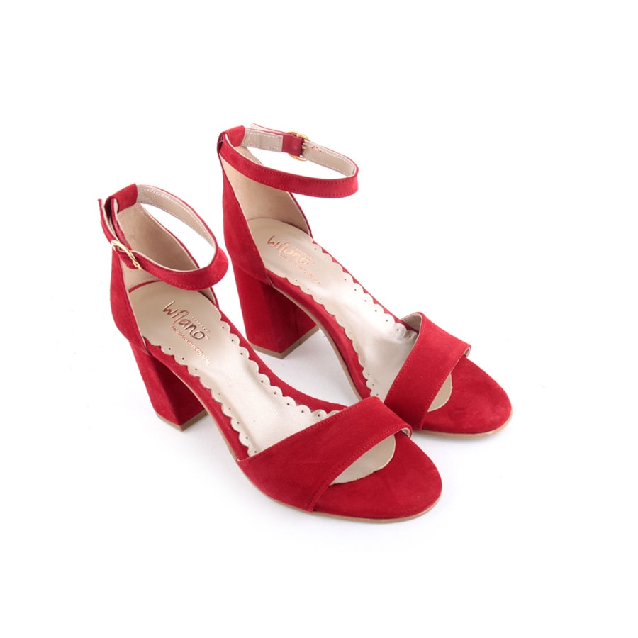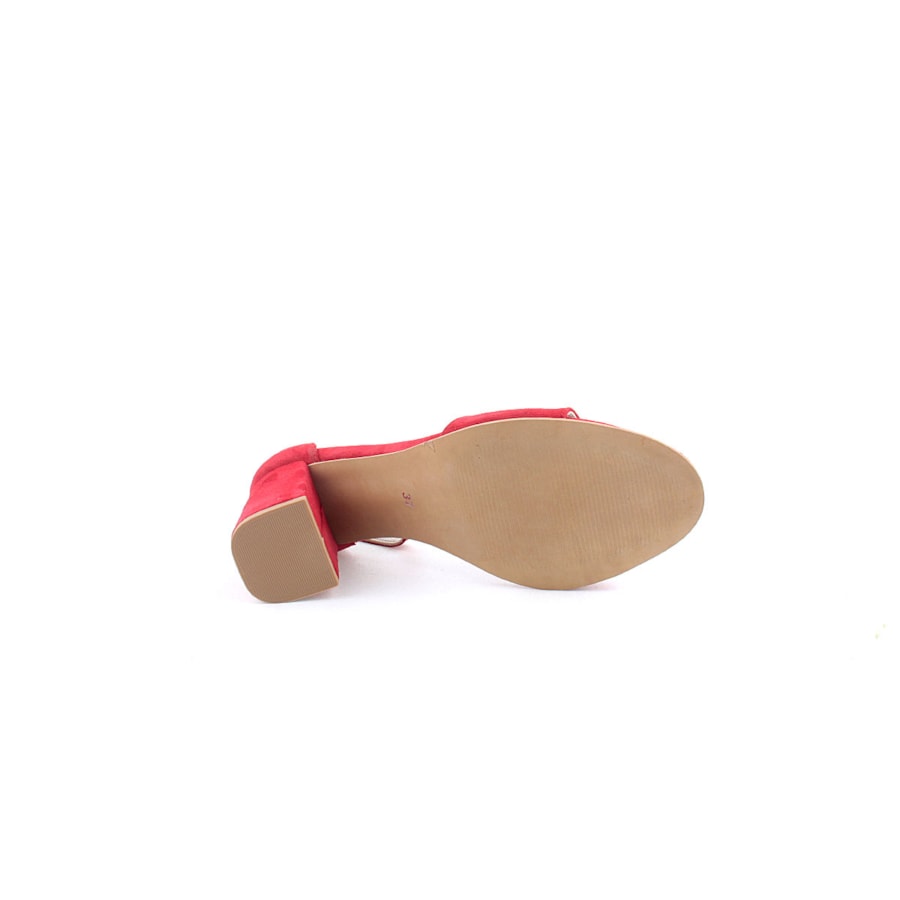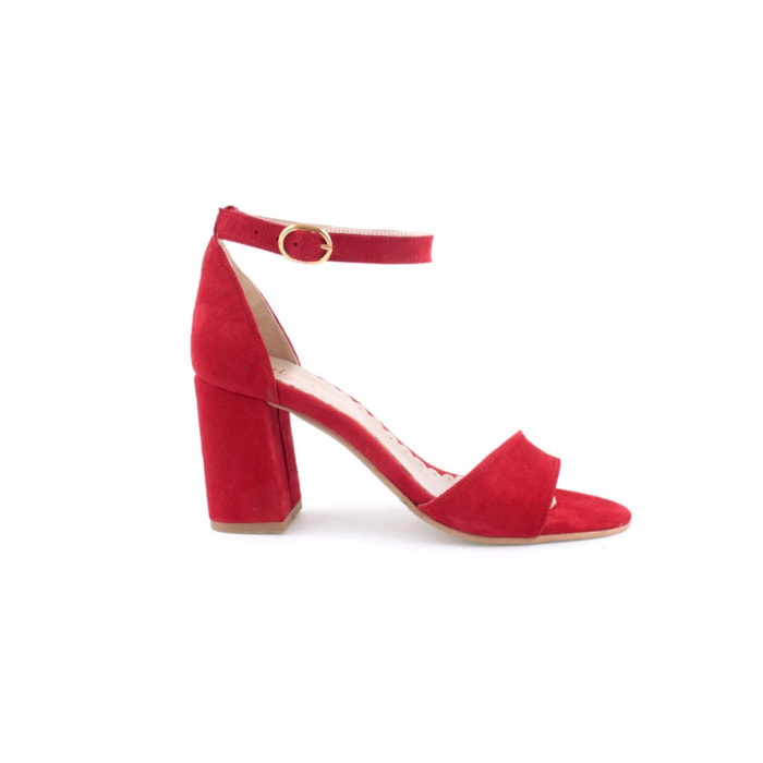 Sandália em pele para senhora. Salto com 8cm de altura. Disponível nas cores preto e vermelho.