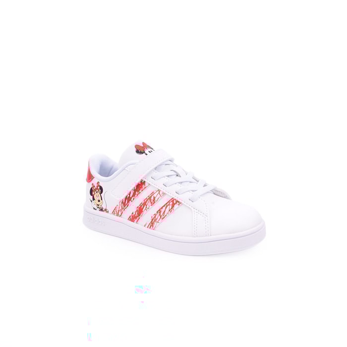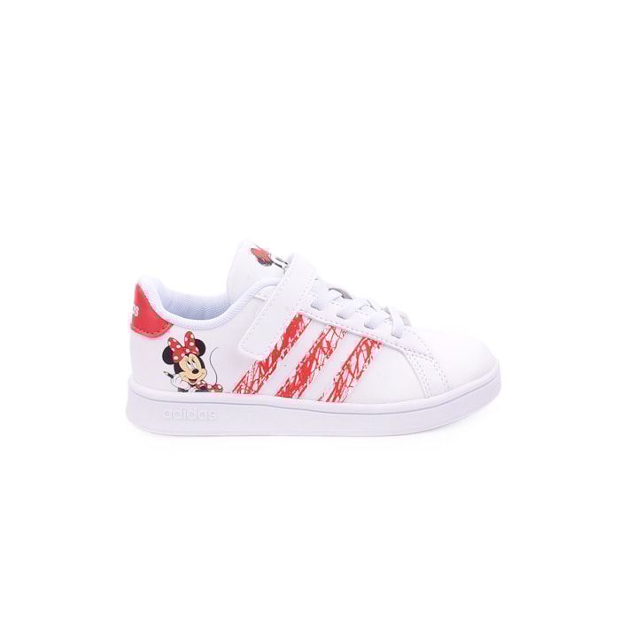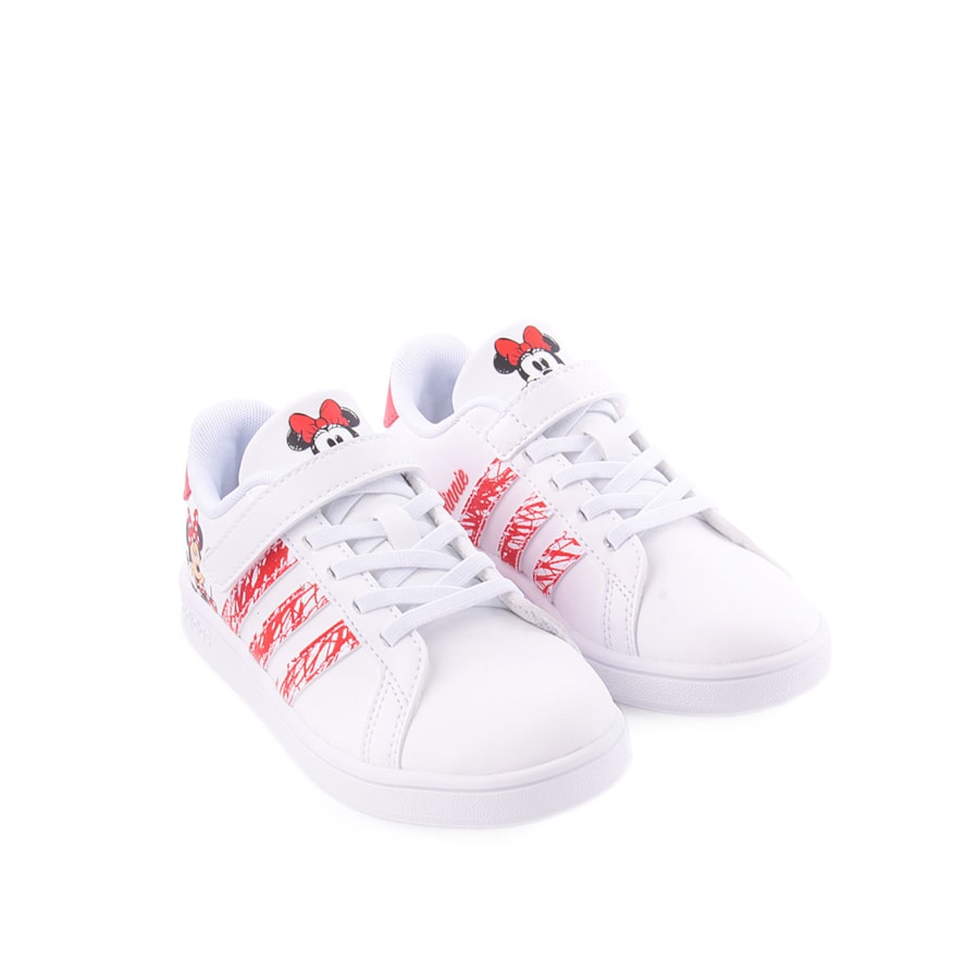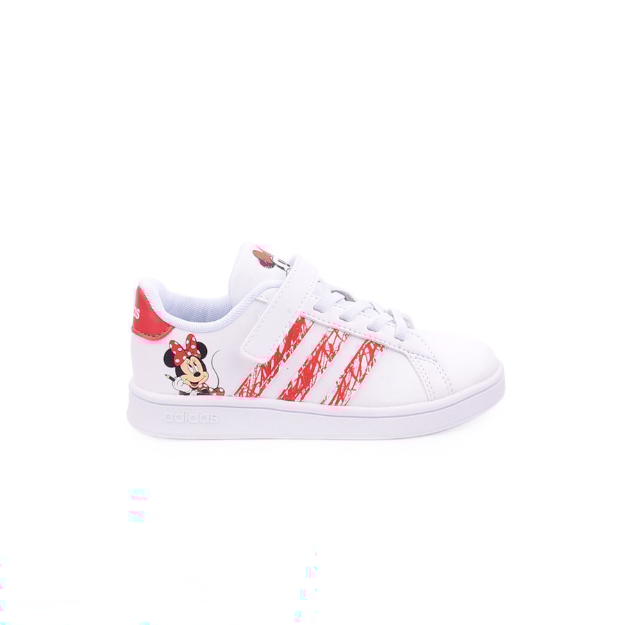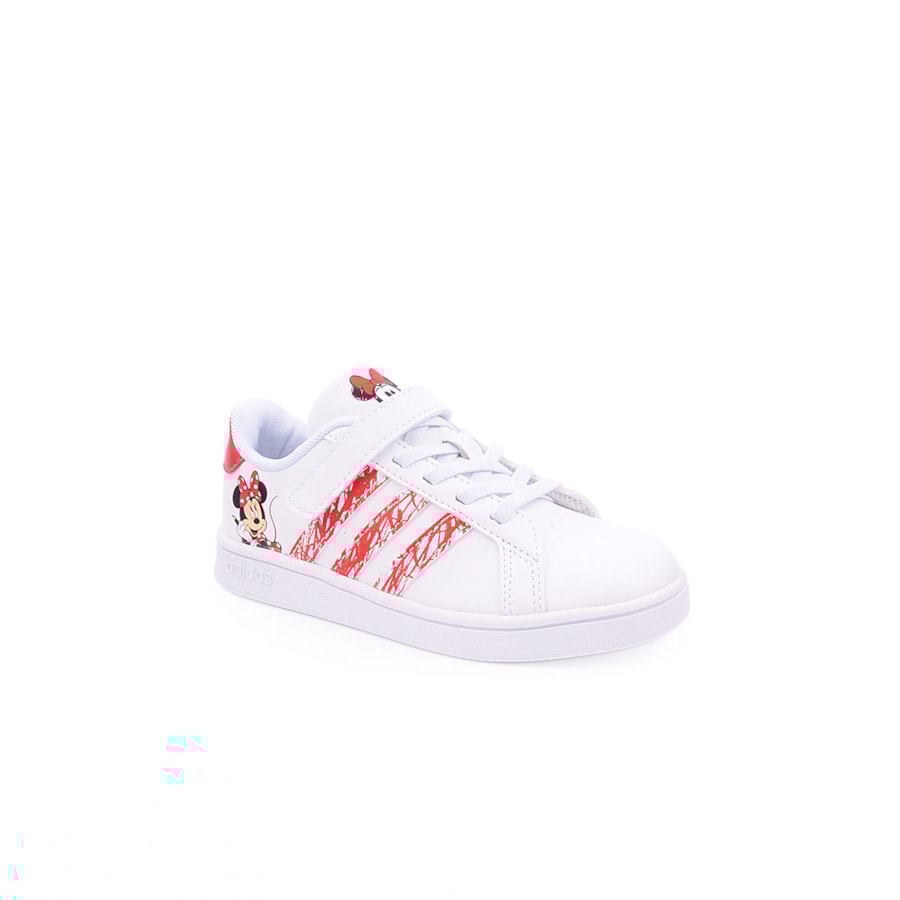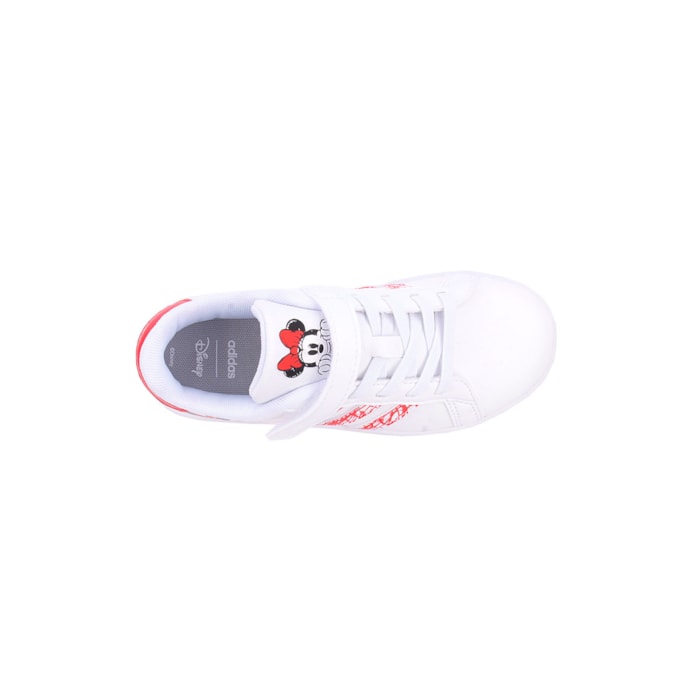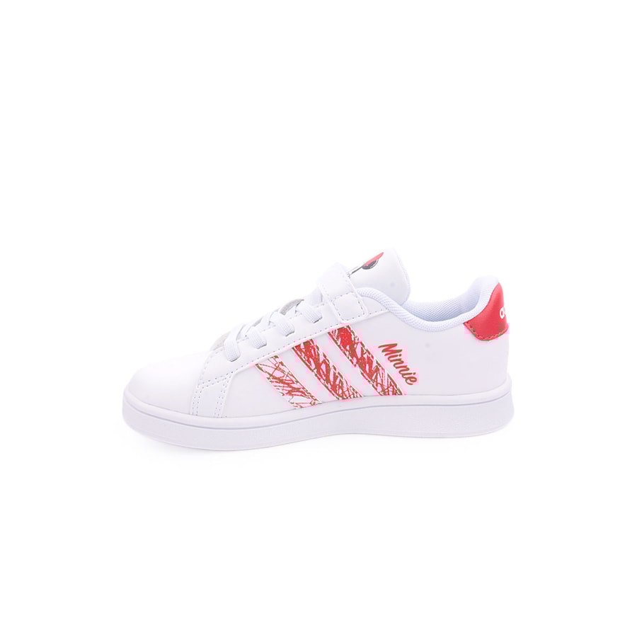 Sapatilhas Adidas Grand Court Minnie I Kids confecionadas em materiais sintéticos e têxteis parcialmente reciclados com sola de borracha.