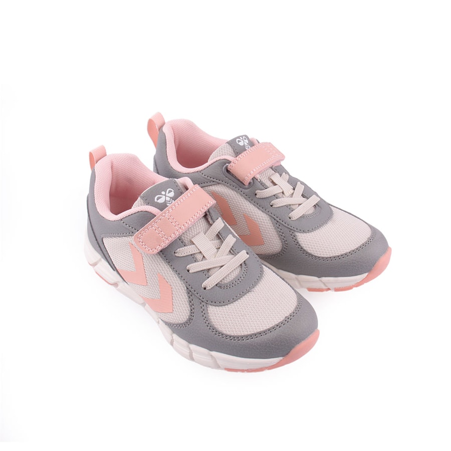 Sapatilha Hummel com fita em velro e atacadores elásticos.