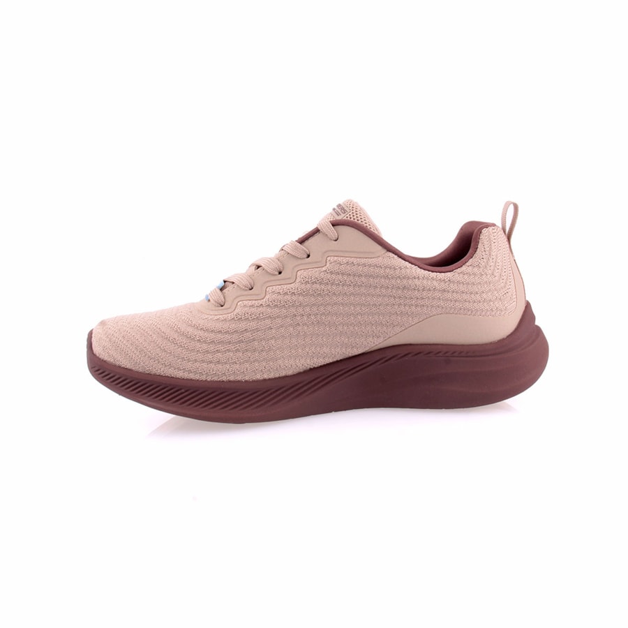 Sapatilhas Skechers Bobs Moda Flex - Mellow Dawn Bege e Castanhas vegan confecionadas em materiais têxteis e sintéticos com parte superior em malha texturizada, palmilha Skechers Memory Foam acolchoada e confortável e sola de tração flexível. Altura da entressola: 3.5 cm (aproximadamente)