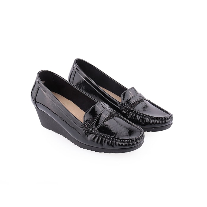 Sapato com salto em cunha para senhora.