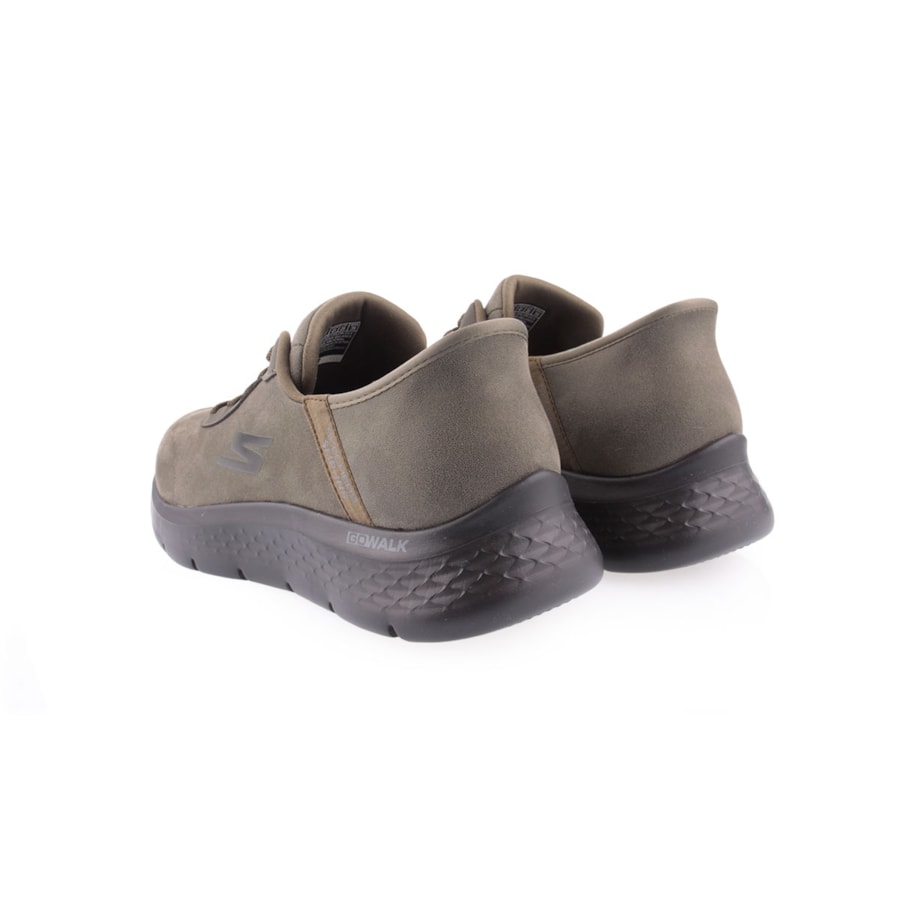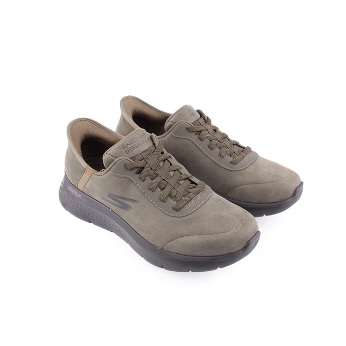 Just Slip In™ para estilo e conforto flexível com as Skechers Hands Free Slip-ins®: GO WALK Flex™ - Smooth Motion. Desenhadas com a nossa Heel Pillow™, estas sapatilhas slip-on têm a parte superior em pele sintética, atacadores elásticos, palmilhas Skechers Air-Cooled Memory Foam™ e amortecimento ULTRA GO® leve.