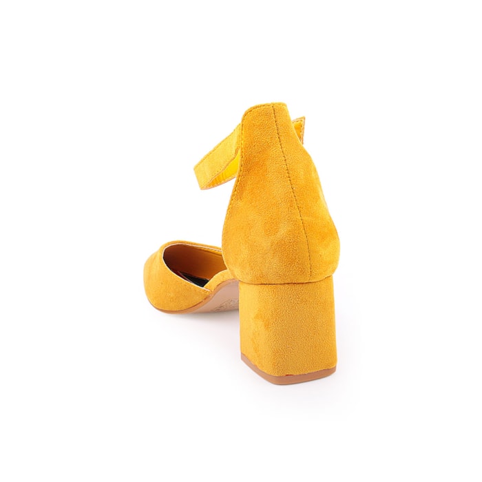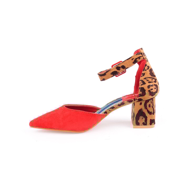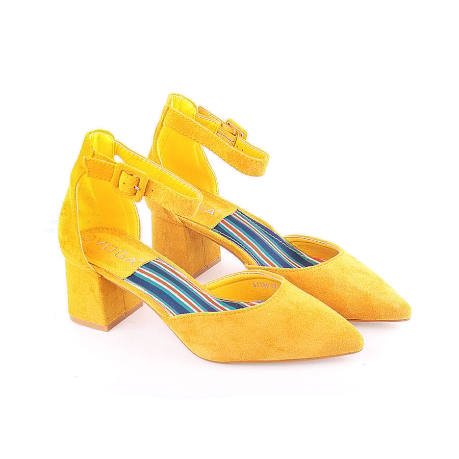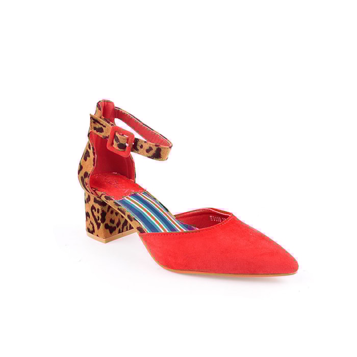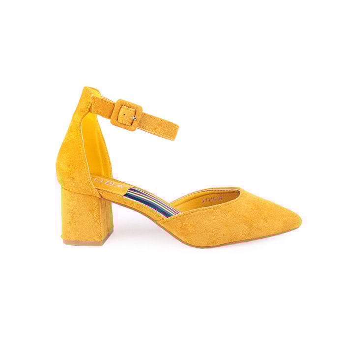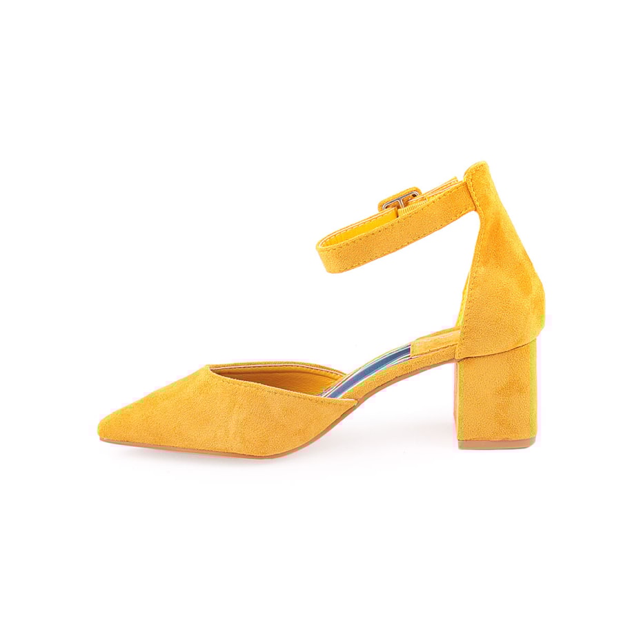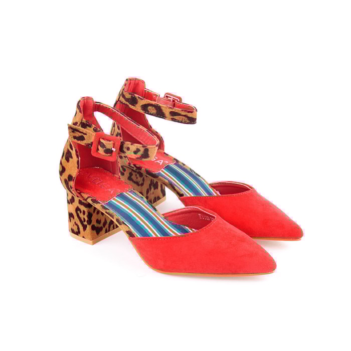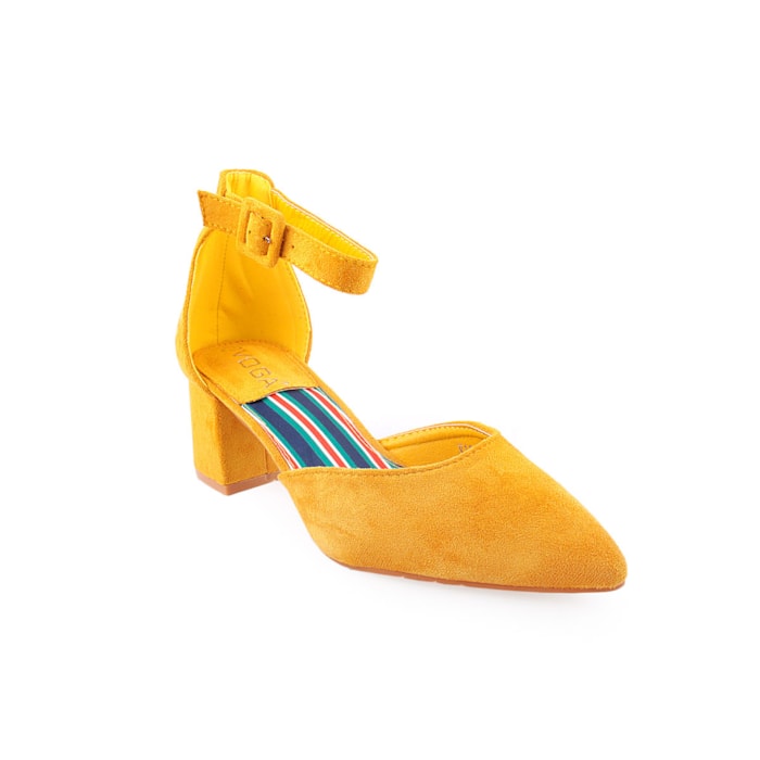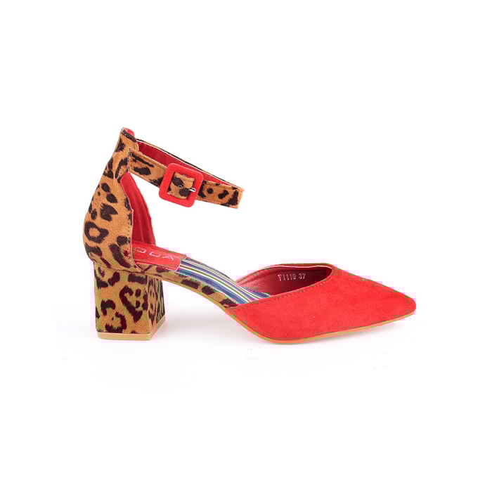 Sapato para senhora que aperta no tornozelo. Salto com 6cm de altura. Disponível nas cores amarelo, leopardo, nude e preto.
